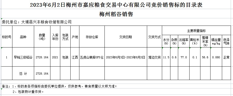 受客戶委托,梅州市嘉應糧食交易中心有限公司定于2023年6月2日(星期五)舉辦糧食競價交易會。大埔縣興豐糧食收儲有限公司擬銷售2021年早秈稻2728.164噸。