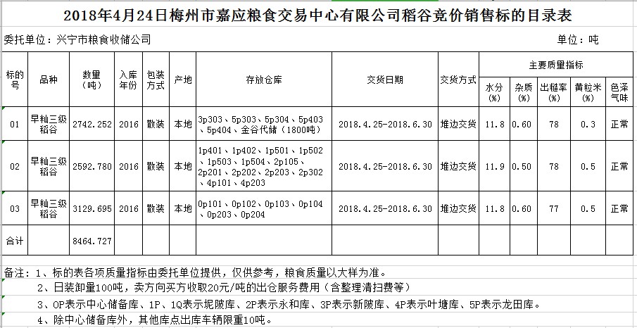 交易時間和地點(diǎn):2018年4月24日(星期二)上午10時。廣東省梅州市彬芳大道南161號梅州市糧食交易中心3樓。